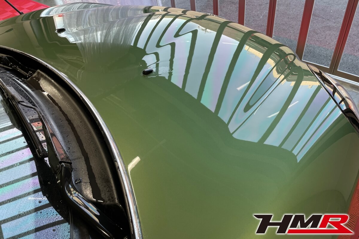 表面の汚れが落ちたことでお車本来の艶感が蘇りました。とても綺麗なジャングルグリーンです。