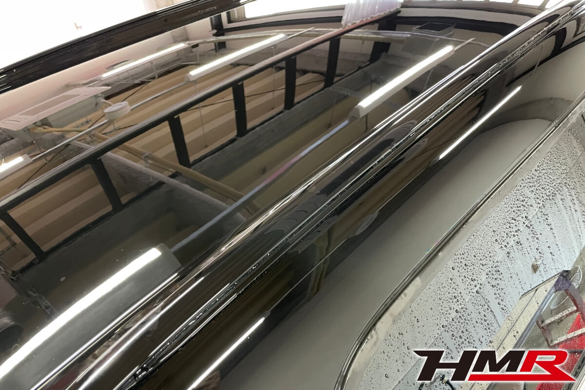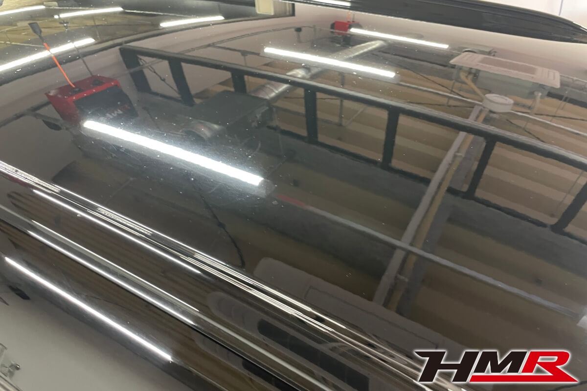 それではコーティングの作業に入っていきます。クリスタルキーパーは二層の被膜から成るコーティングです。まずは一層目の「ガラス被膜」を塗っていきます。この被膜はガラス特有のきれいな艶を出しながら水垢の付着を防いでくれます。