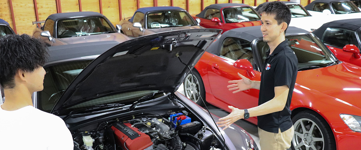 スポーツカーの販売がメインの仕事となります。当社は完全来店型の営業スタイルとなりますので、個人宅を訪問することはまずありません。また、来店するユーザーのほとんどが事前にご予約をいただいてから来店されるため、集客のための営業活動は一切販売スタッフは行いません。ご来店されたお客様へスポーツカーをご案内して、見積作成、契約書作成、納車までの段取り、アフターフォローが一連の業務となります。これら以外には入庫したスポーツカーの状態確認や仕上げ、広告作成業務などがあります。youtubeにて詳細に紹介していることもあり、来店されるお客様は既にその車の情報や状態を知っていることが多く、車両のメカニカル状態についてもオープンになっているため、接客はとてもやりやすい環境となっています。
