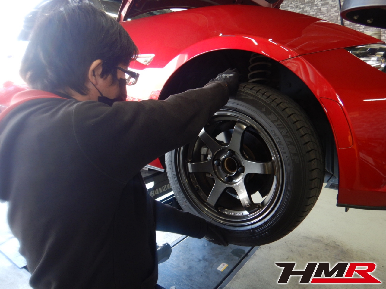 HMR(エイチエムアール)の栗原です。今回はVOLKRACING TE37SONIC15インチ HKS車高調を装備したロードスター(ND5RC) 1.5 S スペシャルパッケージの納車前点検整備を行いました。担当はムラシタです。