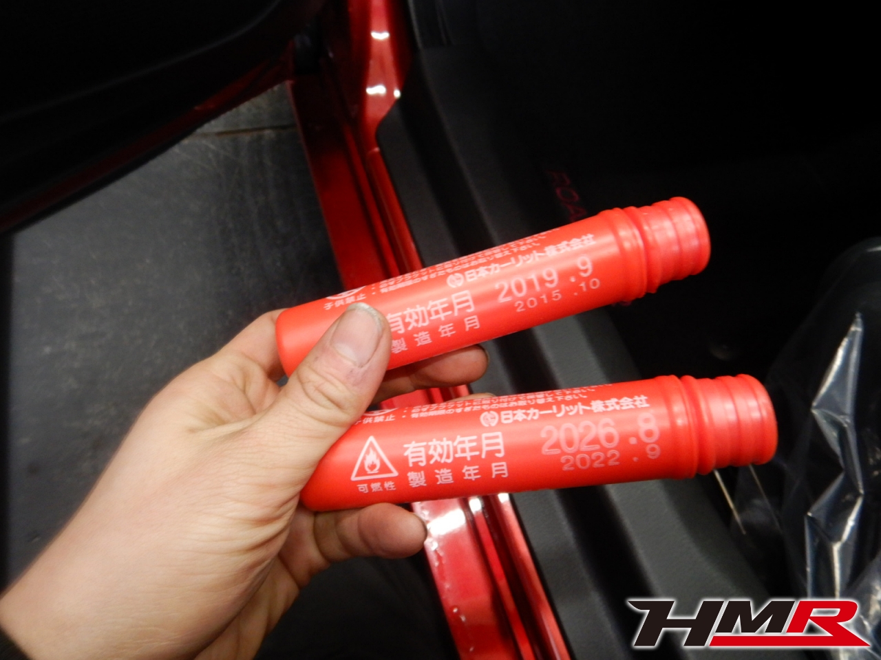 HMRではクルマに応じて、納車前点検でエンジンオイル・ブレーキフルード・ミッションオイル・デフオイル・ラジエタークーラントを新品交換しています。油脂類がリフレッシュされていれば納車してすぐのドライブも安心して楽しめますね。まずエンジンオイルから抜いていきます。エンジンオイルはエンジン内部の潤滑および冷却を行います。定期的な点検を行わず走り続けるとエンジンパワー低下、燃費悪化の原因となります。使用状況によりますが半年または5,000kmでの交換をおススメいたします。オイルフィルターも交換していきます。フィルターの交換のタイミングはオイル交換2回ごとになります。 ミッションオイルも抜いていきます。ミッションオイルが劣化していくとギアの入りが悪くなったり、最悪ミッションのギアを痛めてしまいミッションブローに繋がります。 リアデフオイルも抜いていきます。 新しいリアデフオイルを入れていきます。ミッションオイルも入れていきます。WAKO’SのMT-90になります。  エンジンオイルを入れていきます。エンジンオイルはWAKO’SプロステージS 100%化学合成油 0W-30を使用しています。 タイヤの空気圧チェックをしています。タイヤのエアはゆっくり少しずつ抜けていきます。ガソリンスタンドで簡単に入れられますので1ヶ月に1度のチェックをおススメいたします。 タイヤ溝の残量をチェックしました。フロント7mm・リア6mmでした。 新しいラジエタークーラント液を入れていきます。 サンフレアの有効期限が切れていたので交換します。サンフレアは有効期限が切れていても車載されていれば車検は問題ありません。但しいざとなった時に使えるとは限りませんのでHMRでは有効期限が切れたものは交換させていただいております。 ワイパーブレードゴムを交換していきます。 この他にキーレスエントリーの電池の交換および車高調整を行いまました。最後に4輪アライメントが終われば作業完了となります。U様、この度はロードスター(ND5RC)ご契約ありがとうございました。納車まで今暫くお待ち下さい。