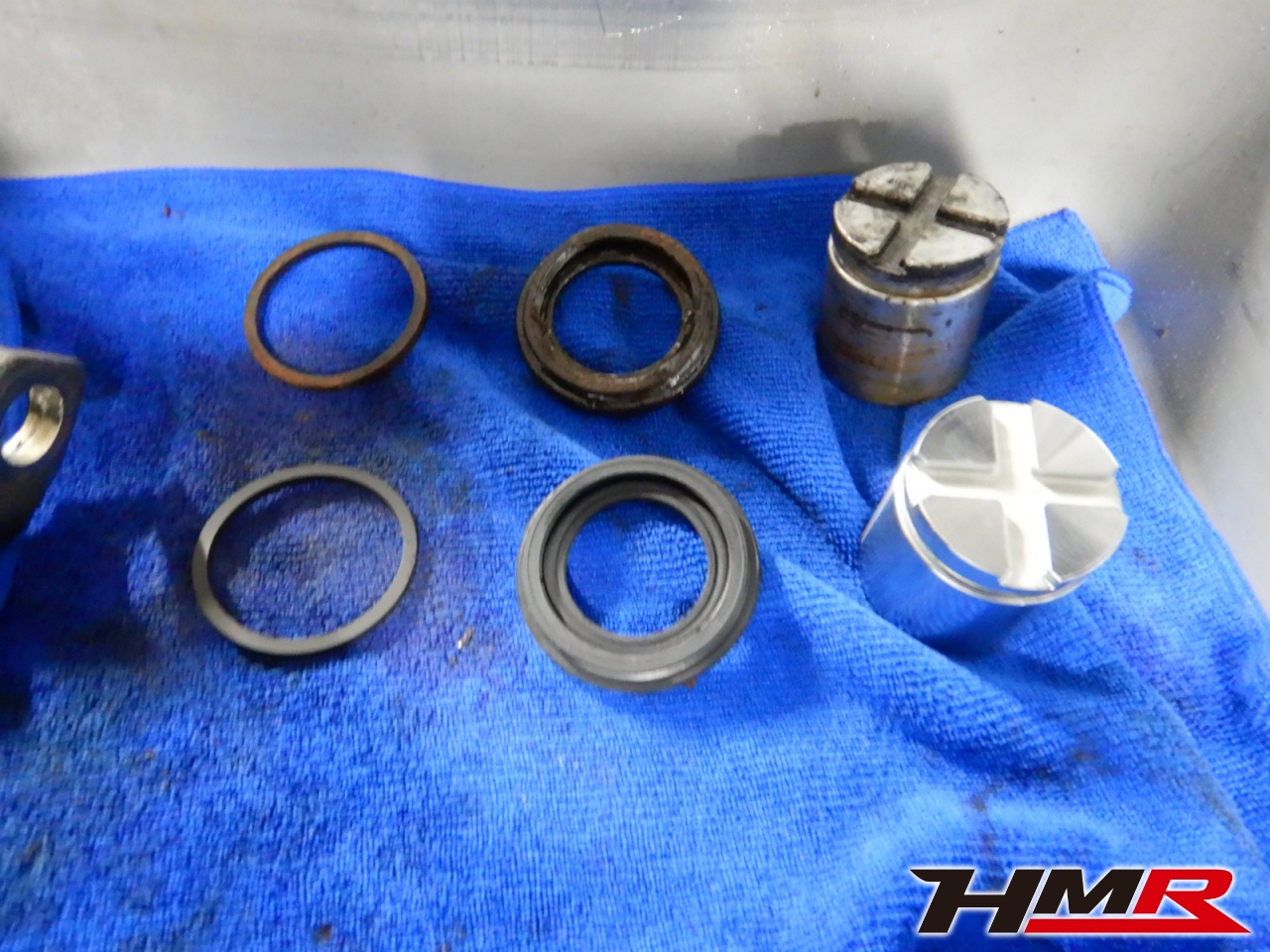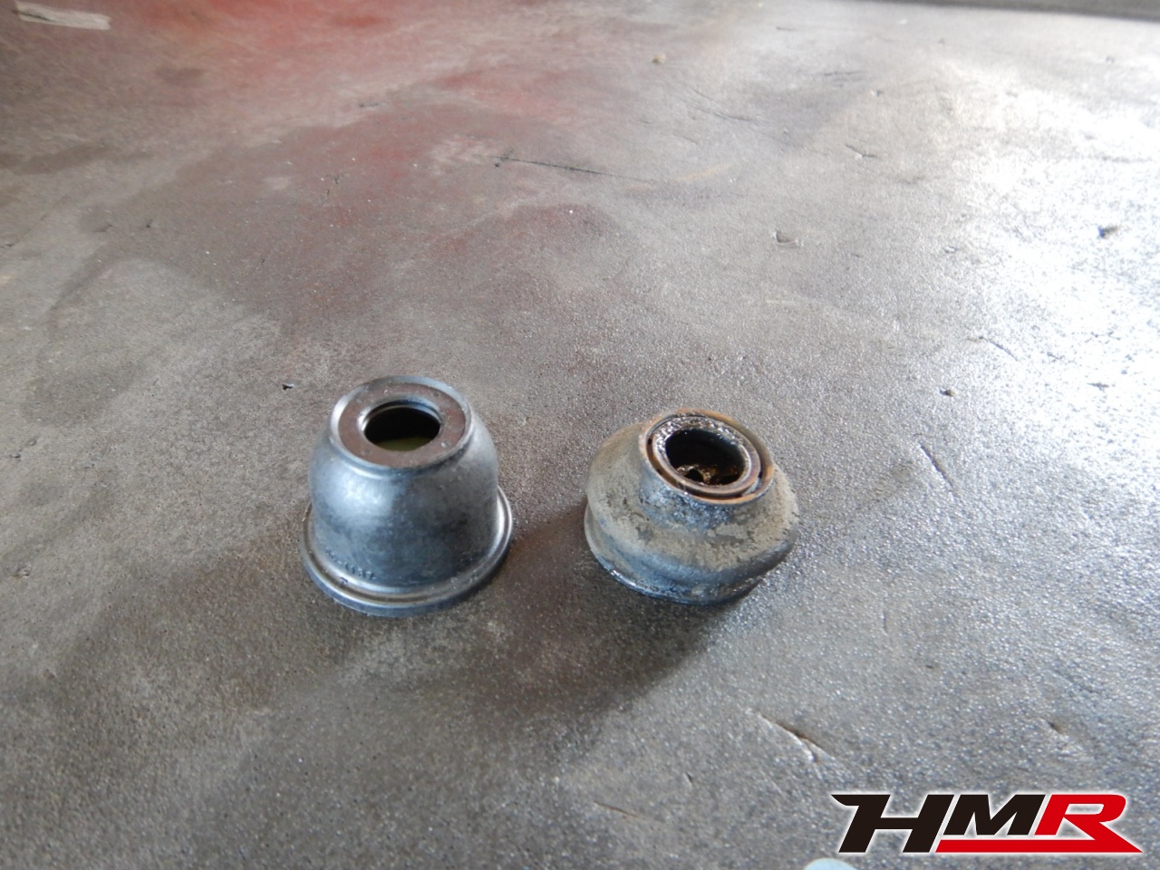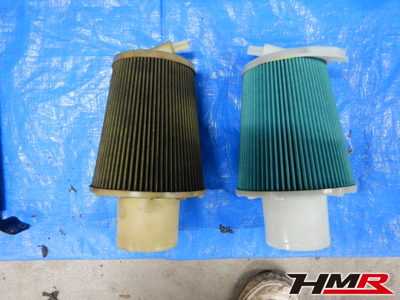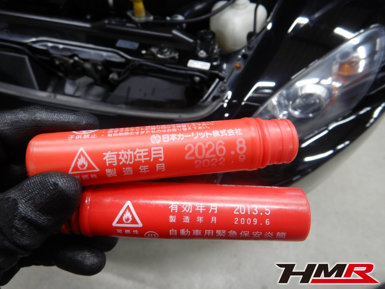 HMRでは納車前点検でエンジンオイル・オイルフィルター・ブレーキフルード・ミッションオイル(MT車のみ)・デフオイル・ラジエタークーラント(スーパークーラントは量調整)を新品交換しています。油脂類がリフレッシュされていれば納車してすぐのドライブも安心して楽しめますね。エンジンオイルはエンジン内部の潤滑および冷却を行います。定期的なエンジンオイルの交換を行わず走り続けるとエンジン不調の原因となります。使用状況によりますが半年または5,000kmでの交換をおススメいたします。それではエンジンオイルを抜いていきます。オイルフィルターの外していきます。ミッションオイルも抜いていきます。ミッションオイルが劣化していくとギアの入りが悪くなったり、最悪ミッションのギアを痛めてしまいミッションブローに繋がります。 リアデフオイルも抜いていきます。 ラジエタークーラント液を抜いていきます。新しいリアデフオイルを入れていきます。新しいミッションオイルを入れていきます。エンジンオイルを入れていきます。新しいクーラント液を入れていきます。 つづいて、汚れていたエアクリーナーを新しいものに交換しました。固着していたブレーキのオーバーホールを行います。キャリパ―ピストンにサビがこびりついていますね。取り外したキャリパーピストン&シールと新しいキャリパーピストン&シールです。ヒビ入っていたタイロッドエンドのブーツを左右とも交換しました。ワイパーブレードも劣化しておりましたので新しいものに交換しました。サンフレヤの有効期限が切れておりましたので、新しいものに交換しました。有効年月を越えた発炎灯は車載してあれば車検は通過しますがいざとなった時に使用できるかはわかりません。HMRでは有効年月を越えたものは交換させていただいております。リモコンのバッテリーを新しいものに交換しました。