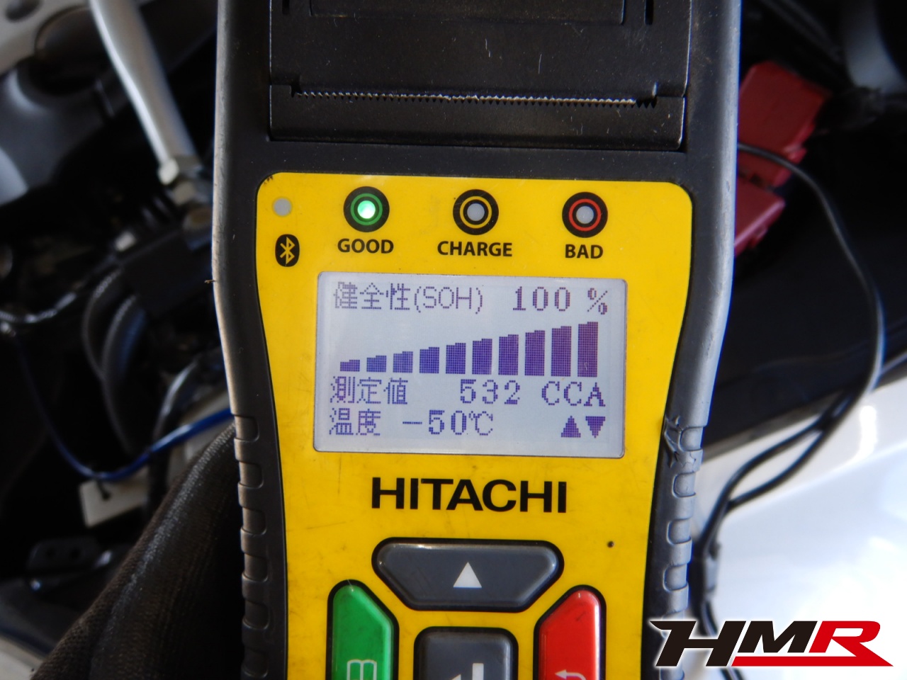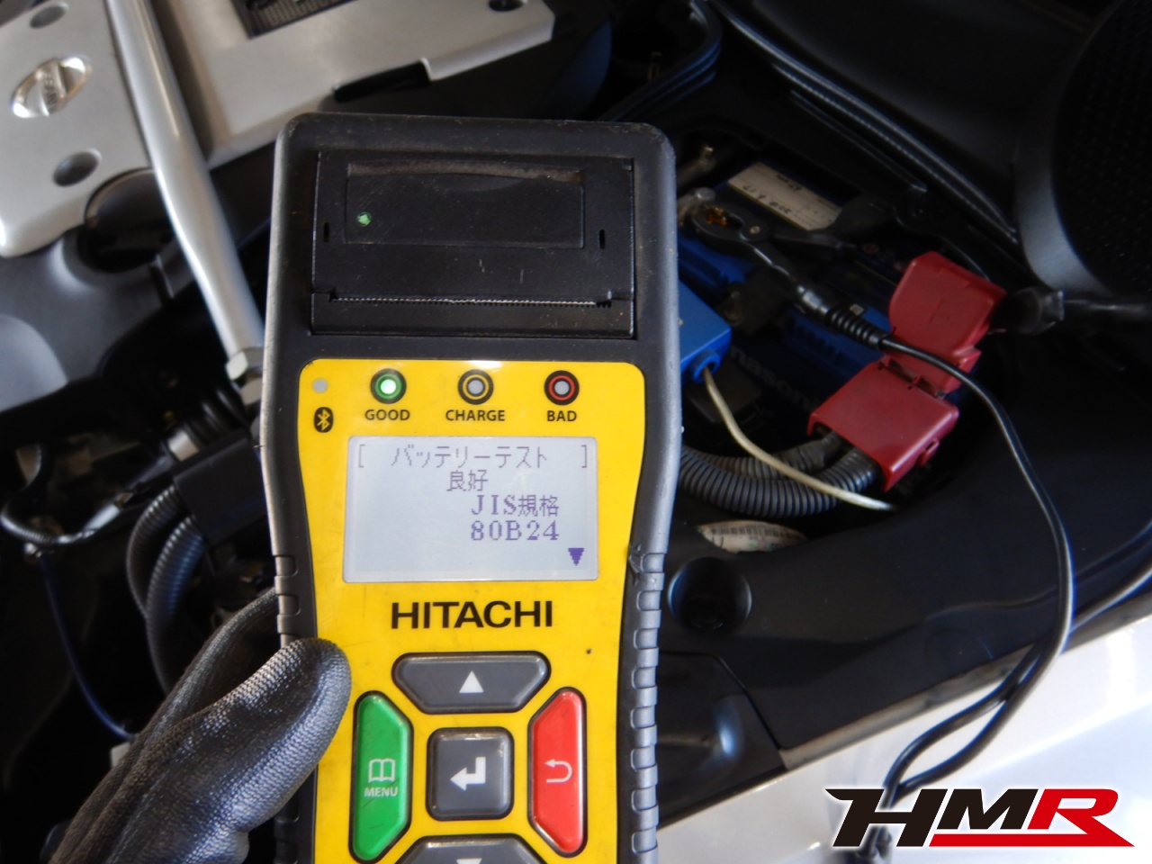 エンジンルーム周辺をチェックしていきます。最初にバッテリーの健全性をチェックしていきます。問題ありませんでした。バッテリーの寿命は使用状況によりますが新品に交換後3〜5年となります。 近年、スマートフォンなど充電するアクセサリー類やセキュリティなどで知らずしらずの内にバッテリーに対する負荷が高くなって劣化しやすくなっています。マメにエンジンを掛けて充電したり、カー用品店などで購入できる充電器を用意しておくといいでしょう。インテークホースをチェックしました。問題ない範囲ですが少しひびが見えます。インテークホースに亀裂や破損が起きるとエアフィルターを通さない空気がエンジンに送り込まれてしまいエンジン不調の原因となります。お早目の交換をおススメいたします。 エアフィルターの点検を行いました。問題ありませんでした。汚れで目詰まりを起こすと燃費悪化やエンジン本来の性能を発揮できなくなります。定期的にケースを開けて目視で確認してみましょう。 次に冷却系廻りを点検していきます。問題ありませんでした。経年劣化していくと亀裂が入りそこから冷却水が漏れてしまいエンジンがオーバーヒートを起こす可能性があります。定期的な点検をおススメいたします。 補機ベルトの状態およびオートテンショナーの異音やガタが無いかを点検していきます。問題ありませんでした。ベルトが切れてしまうとバッテリー充電が出来なくなり最悪エンジンが停止する恐れがあります。定期的な点検をおススメいたします。 スパークプラグの点検を行いました。6本とも特に問題ありませんでした。先端の部分がひどく汚れてしまうとエンジンが掛かりづらくなったり、走行中に失火が起こり故障の原因となります。エンジンが掛かりづらくなるなどの症状が出た場合は当店にご相談ください。 リフトアップして足廻りをチェックしていきます。まず最初にタイヤを縦横に揺らしてハブベアリングとボールジョイントのガタがないかチェックを行います。特に問題ありませんでした。走行中に異音やハンドルのガタつきなどを感じた場合は当店へお早めにご相談下さい。 足廻りのブッシュ・ブーツをチェックしていきます。ブッシュ・ブーツが劣化してそのままにしておくとそこからグリスが漏れ出したり、異物が侵入して足廻りの機能に支障をきたすだけではなく、車検を通過できなくなってしまいます。またそれ以外にもダンパーのオイル漏れがないかを点検していきます。 ブレーキ廻りの点検をしていきます。まずはブレーキキャリパーシールの状態やキャリパーピストンの動きを確認していきます。特に問題ありませんでした。  キャリパーシールが劣化しピストン内に水分が侵入することでサビが発生します。サビをそのまま放置しているとキャリパーの動きを阻害されブレーキの引きずり症状や固着を引き起こしてしまう可能性があります。 ブレーキパッドの残量をチェックしていきます。フロント8mm・リア8mmでした。  タイヤ溝の残量を確認しました。フロント5mm、リア3mmでした。  タイヤの空気圧チェックをしています。タイヤのエアはゆっくり少しずつ抜けていきます。ガソリンスタンドで簡単に入れられますので1ヶ月に1度のチェックをおススメいたします。 下廻りをチェックしていきます。特に目立つようなキズやサビもなくきれいな状態でした。