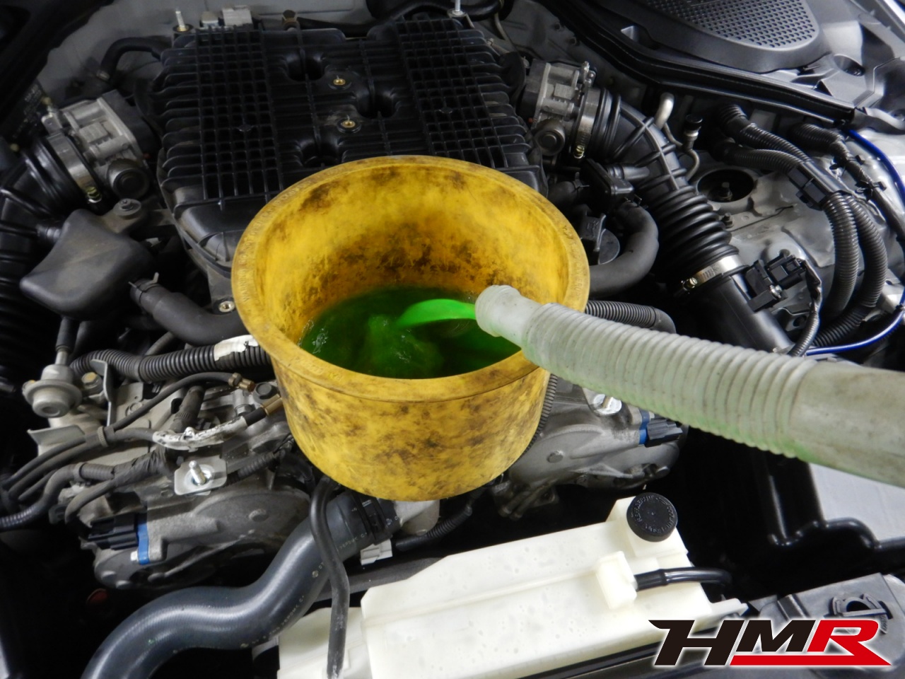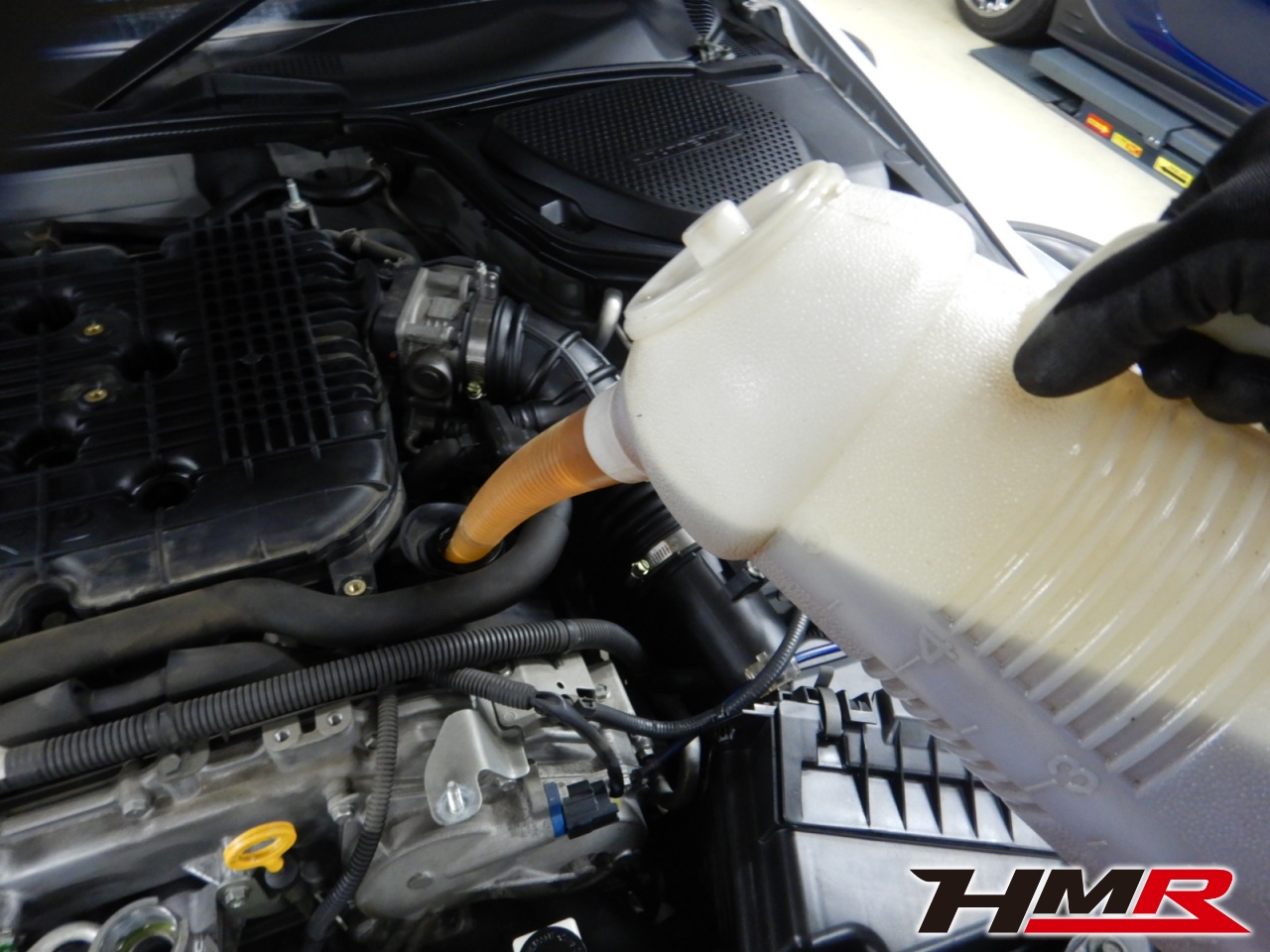 HMRでは納車前点検でエンジンオイル・オイルフィルター・ブレーキフルード・ミッションオイル(MT車のみ)・デフオイル・ラジエタークーラントを新品交換しています。油脂類がリフレッシュされていれば納車してすぐのドライブも安心して楽しめますね。まずはエンジンオイルから抜いていきます。エンジンオイルはエンジン内部の潤滑および冷却を行います。定期的なエンジンオイルの交換を行わず走り続けるとエンジン不調の原因となります。使用状況によりますが半年または5,000kmでの交換をおススメいたします。ミッションオイルも抜いていきます。ミッションオイルが劣化していくとギアの入りが悪くなったり、最悪ミッションのギアを痛めてしまいミッションブローに繋がります。 リアデフオイルも抜いていきます。 クーラント液を抜いていきます。新しいリアデフオイルを入れていきます。新しいミッションオイルを入れていきます。エンジンオイルを入れていきます。新しいクーラント液を入れていきます。 次にブレーキフルードを交換しました。交換タイミングは、車検毎をおススメしております。