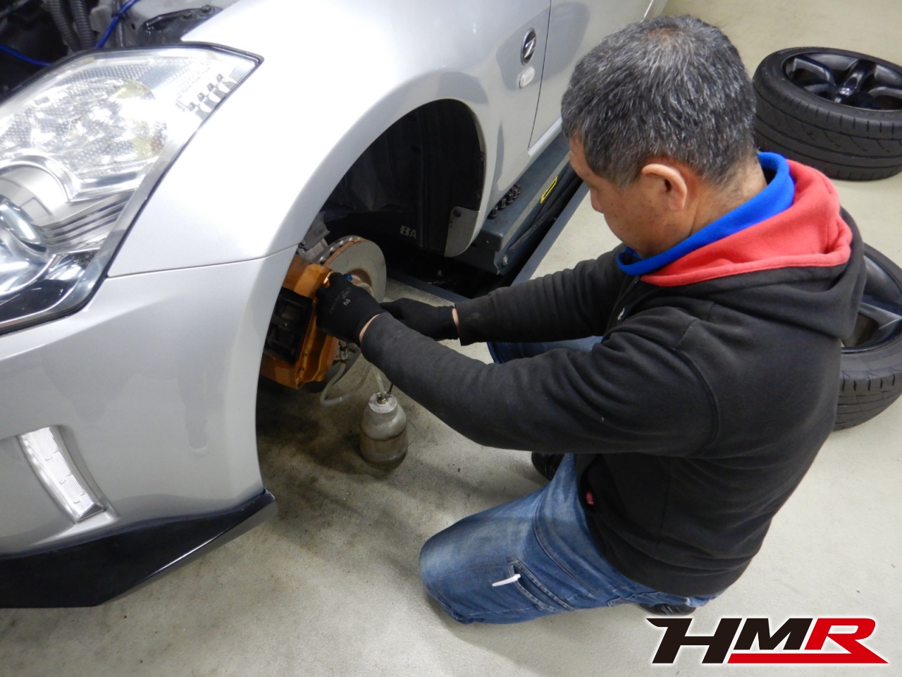 HMR(エイチエムアール)の柏崎です。今回はフジツボマフラー ニスモS-tuneサス装着した日産 フェアレディZ 3.5 バージョン Sの納車前点検整備を行いました。作業担当はメカニックの渡辺です。