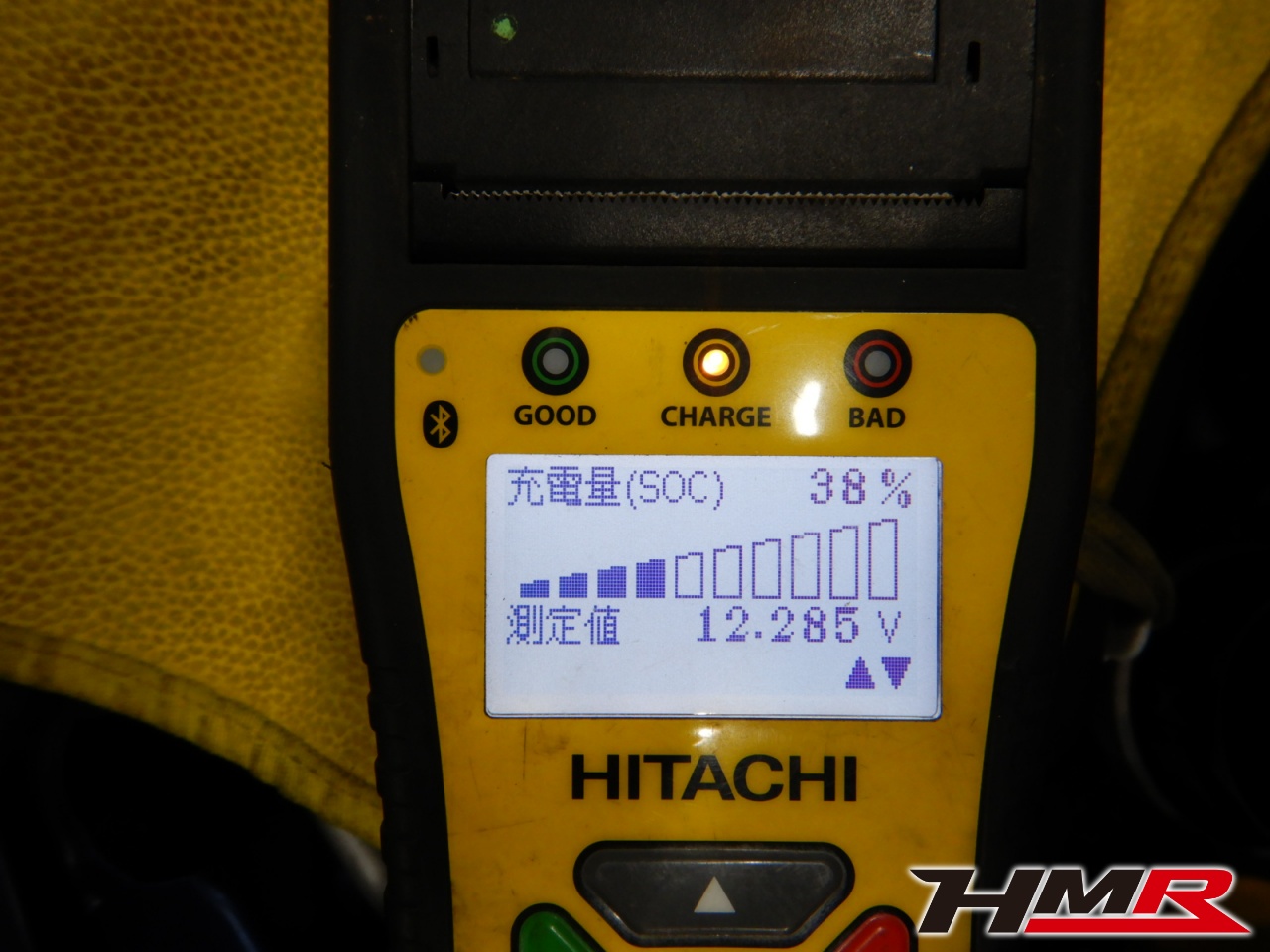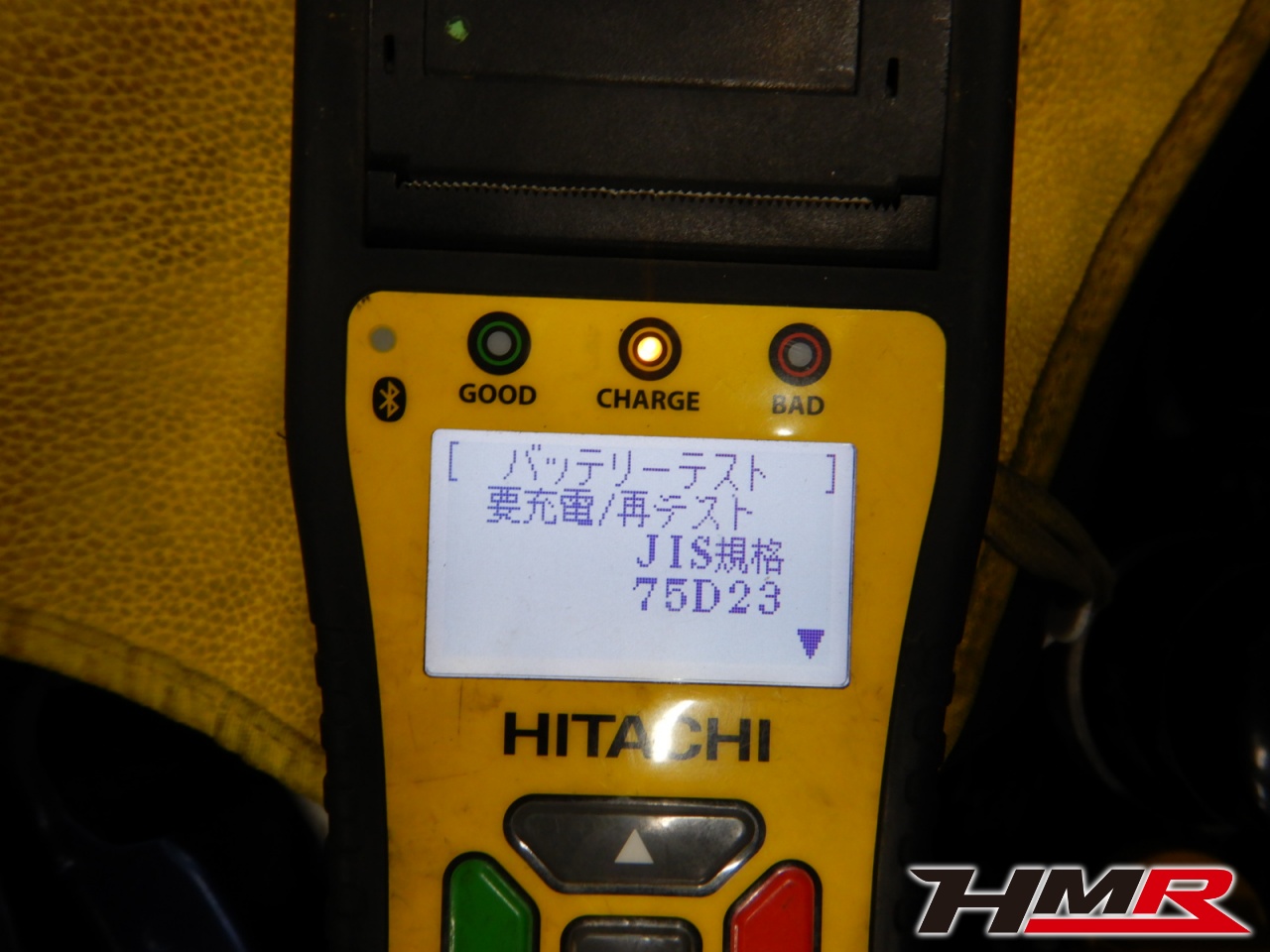 最初にバッテリーの健全性をチェックしていきます。要充電の為、補充電を行います。バッテリーの寿命は使用状況によりますが新品に交換後3〜5年となります。