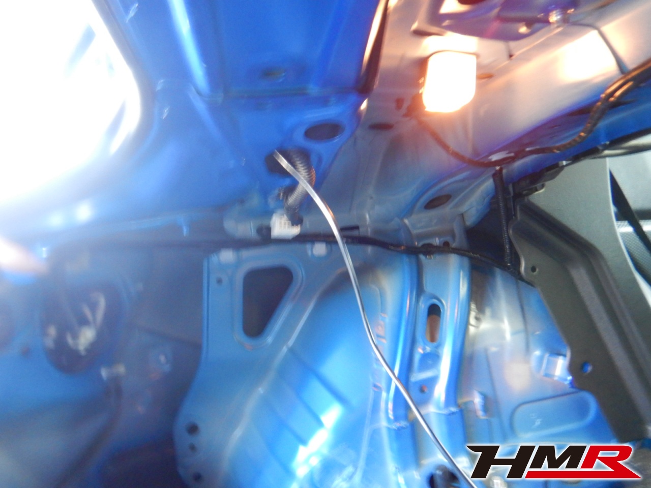 リアカメラを取り付けて配線を車内に引き込んでいきます。