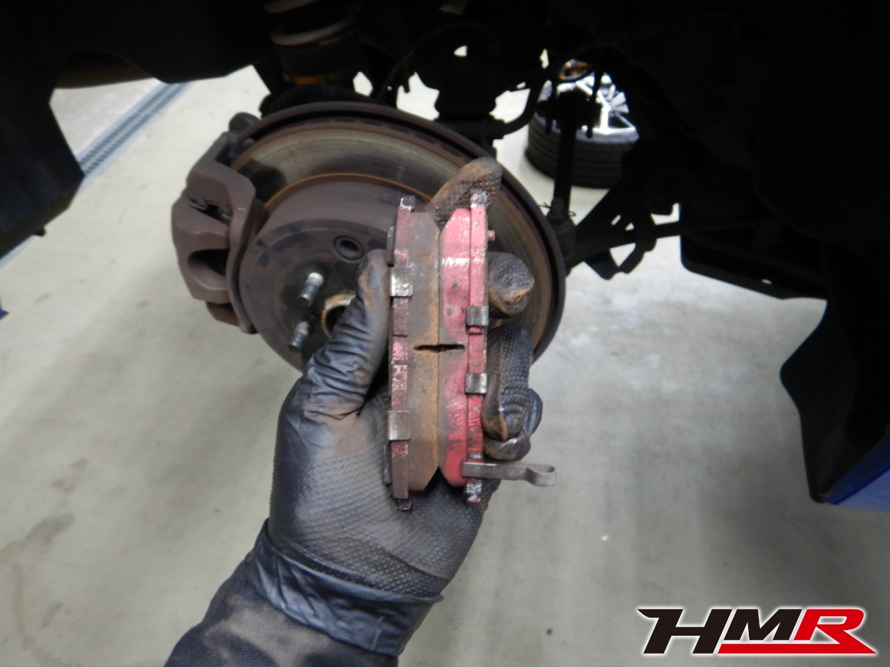 ブレーキパッドの残量をチェックしていきます。フロント7mm・リア9mmでした。