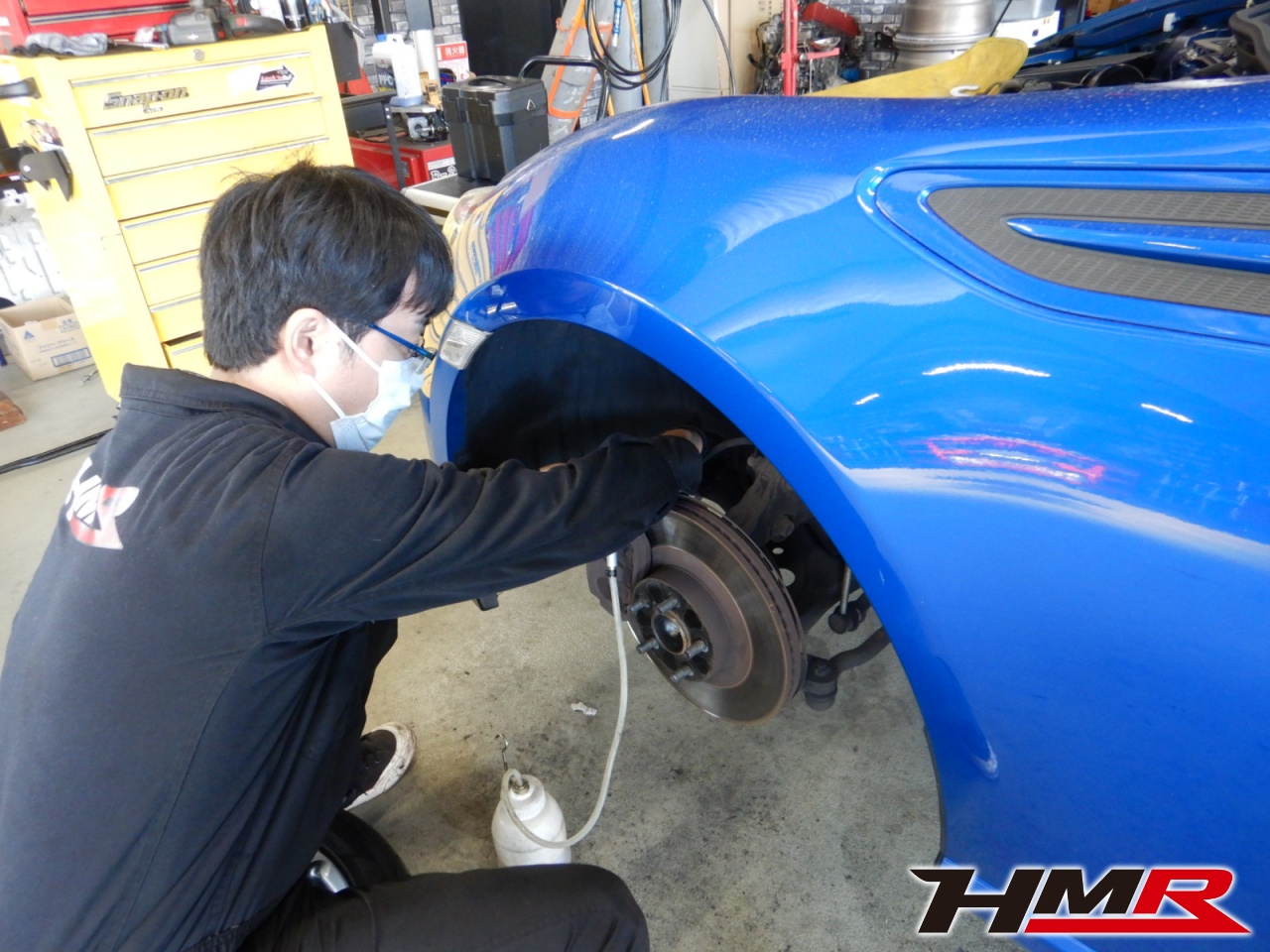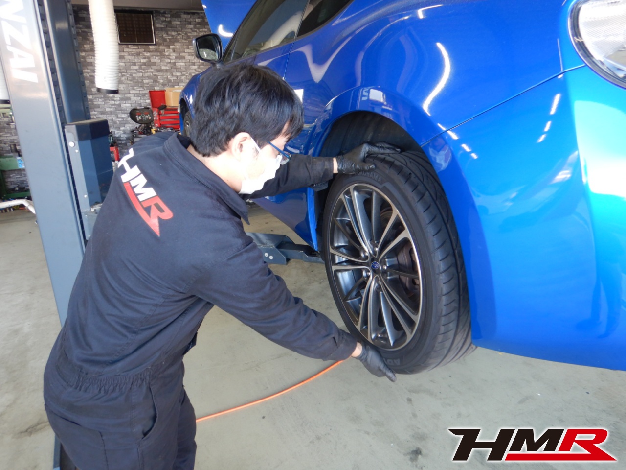 HMR(エイチエムアール)の柏崎です。今回はHKS車高調 エキマニ マフラーを装着したスバルBRZ(ZC6)の納車前点検整備を行いました。作業担当はメカニックの堀口です。