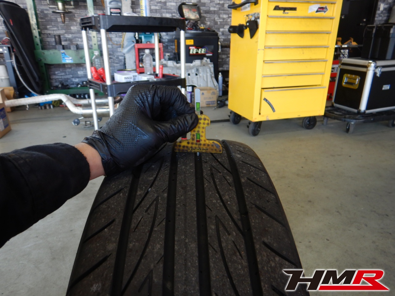 タイヤ溝の残量を確認しました。フロント5mm・リア5mmでした。