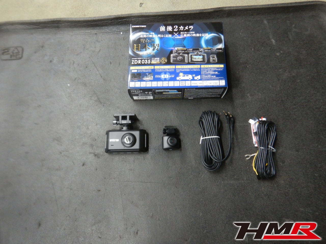 HMRではお客様のご要望で部品の取り付けも承ります。今回は前後2カメラドライブレコーダーを取付します。