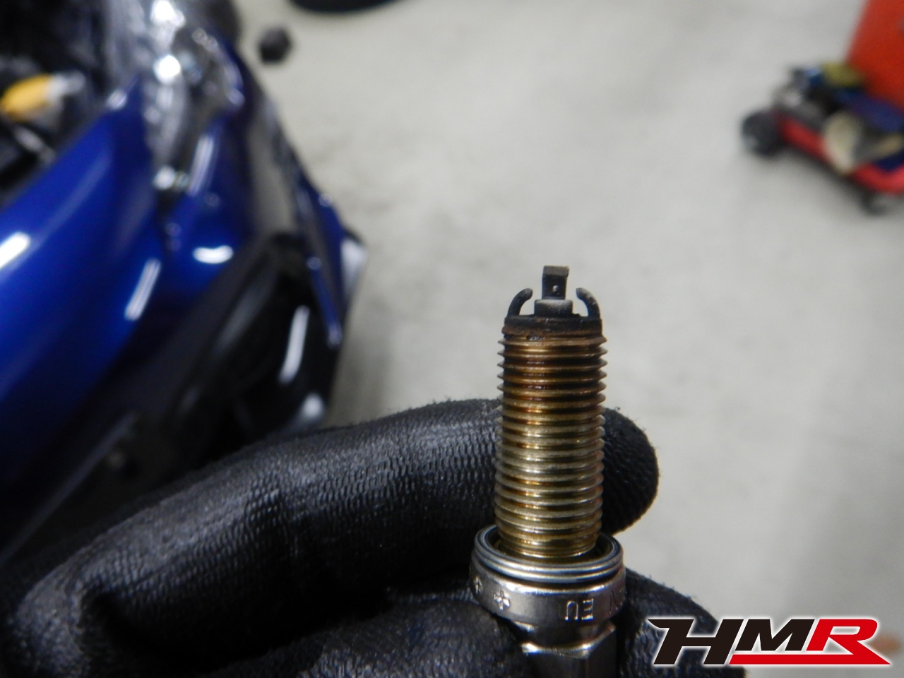 つづいて、スパークプラグの点検を行いました。4本とも特に問題ありませんでした。先端の部分がひどく汚れてしまうとエンジンが掛かりづらくなったり、走行中に失火が起こり故障の原因となります。エンジンが掛かりづらくなるなどの症状が出た場合は当店にご相談ください。