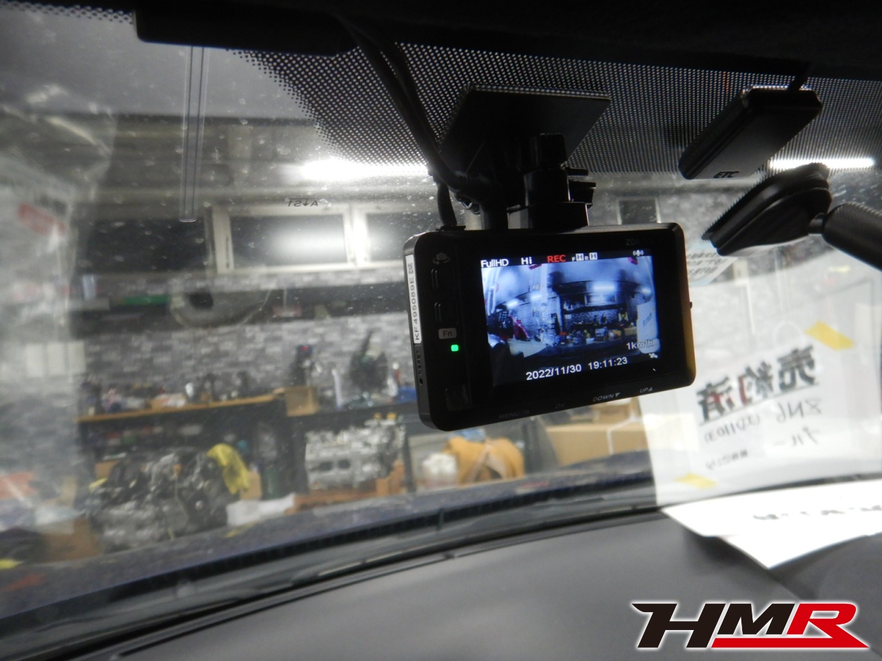 HMRではお客様のご要望で部品の取り付けも承ります。今回は前後2カメラドライブレコーダーを取付します。