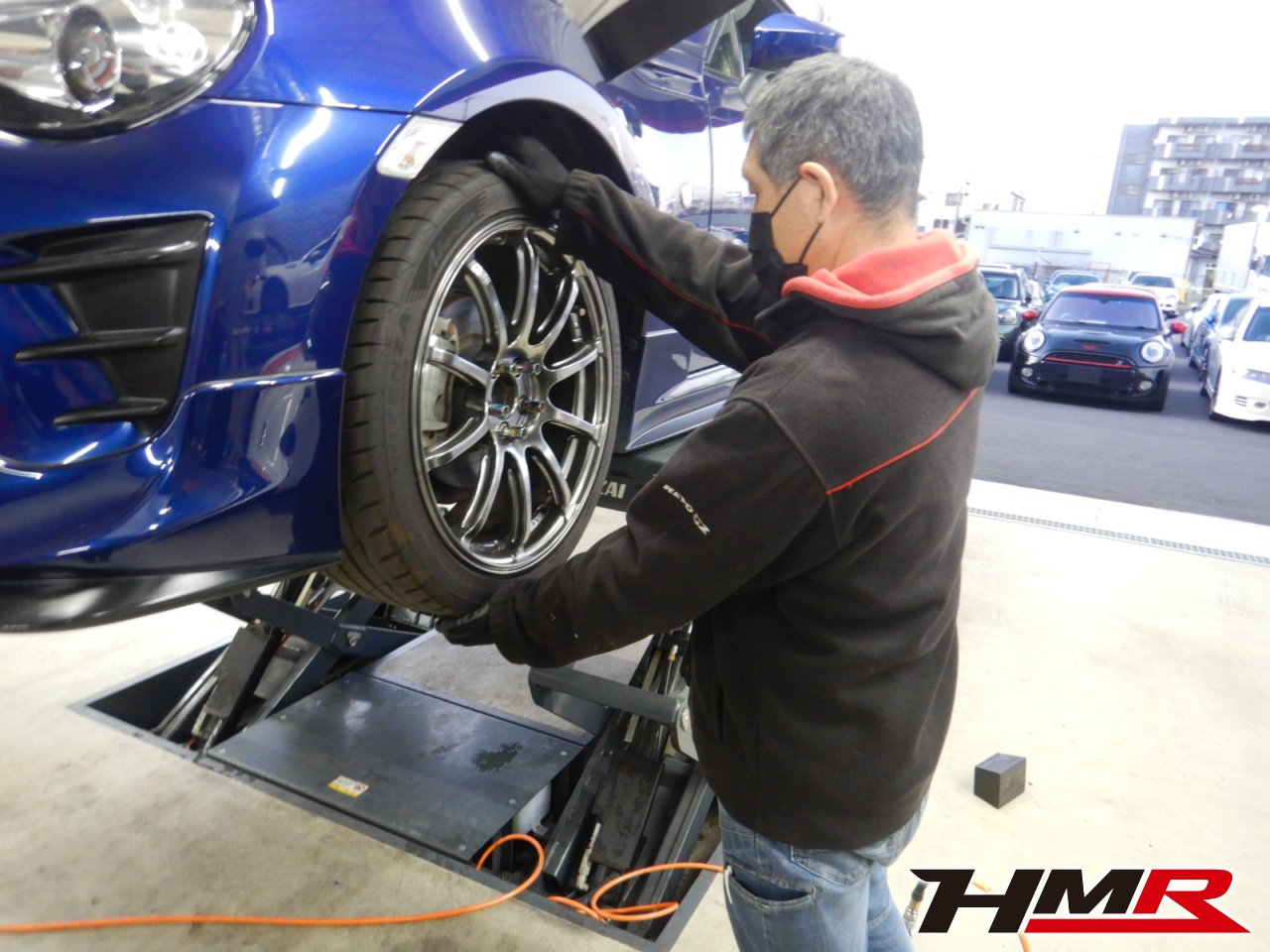 HMR(エイチエムアール)の柏崎です。今回はTRDエアロ Black☆Progress車高調を装着したトヨタ86(ZN6)の納車前点検整備を行いました。作業担当はメカニックの渡辺です。