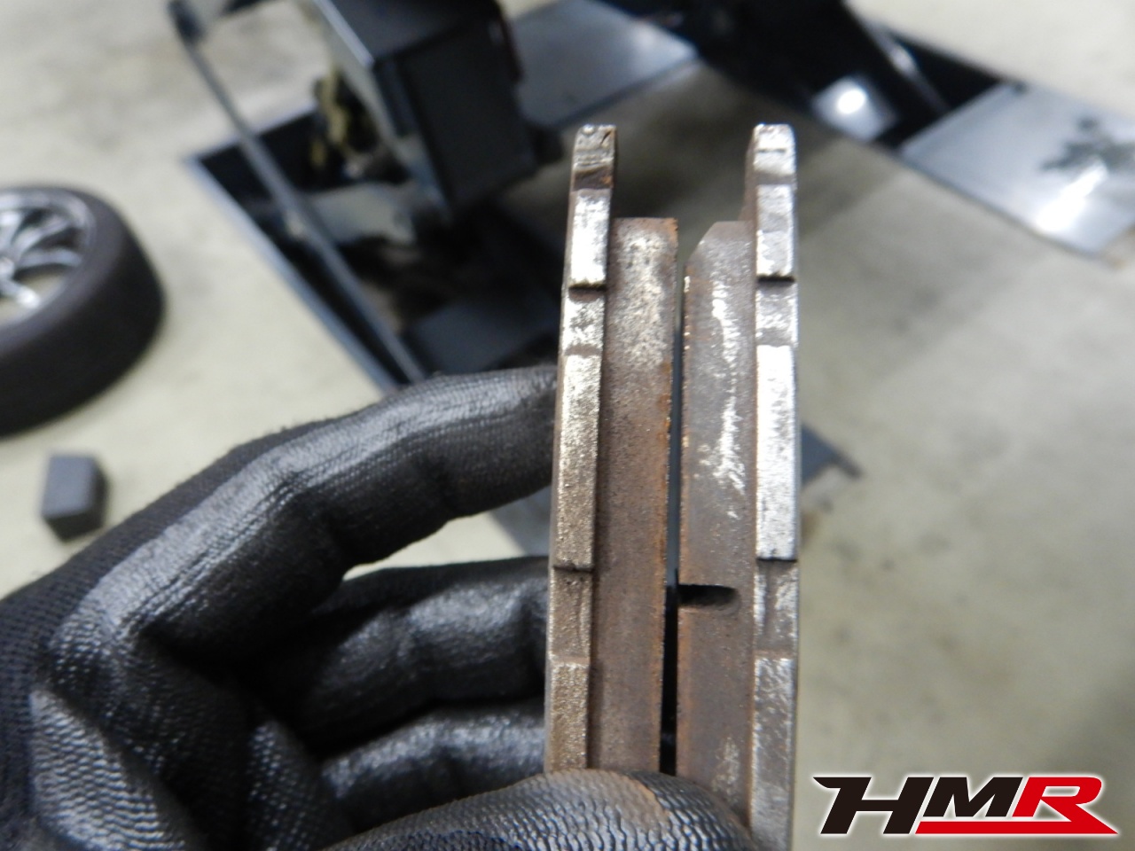 ブレーキパッドの残量をチェックしていきます。フロント9mm・リア8mmでした。