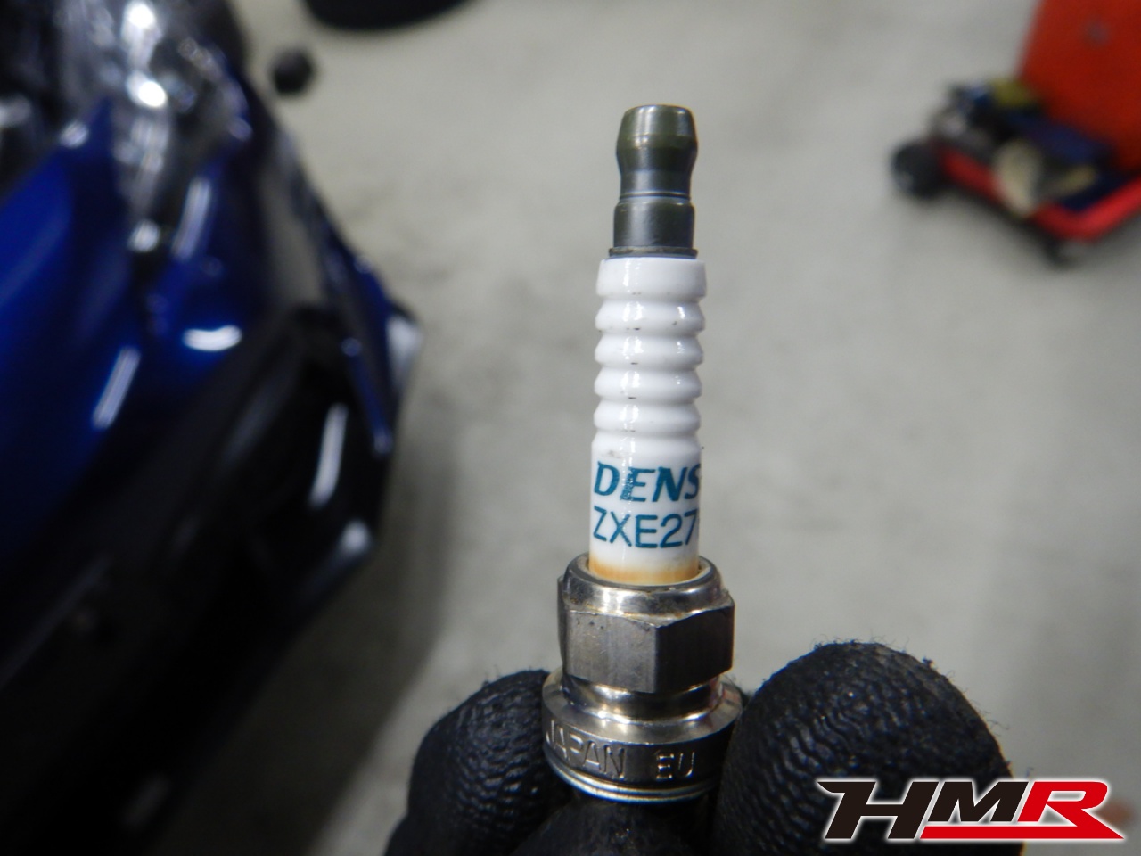 つづいて、スパークプラグの点検を行いました。4本とも特に問題ありませんでした。先端の部分がひどく汚れてしまうとエンジンが掛かりづらくなったり、走行中に失火が起こり故障の原因となります。エンジンが掛かりづらくなるなどの症状が出た場合は当店にご相談ください。