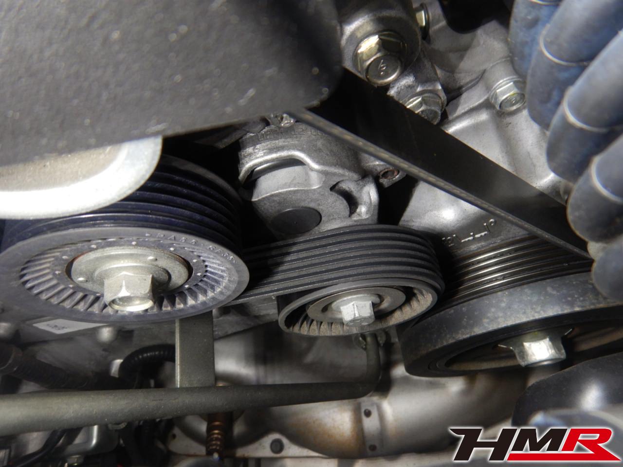 続いて補機ベルトの状態およびオートテンショナーの異音やガタが無いかを点検していきます。問題ありませんでした。ベルトが切れてしまうとバッテリー充電が出来なくなり最悪エンジンが停止する恐れがあります。定期的な点検をおススメいたします。