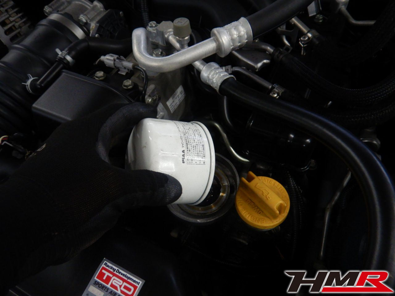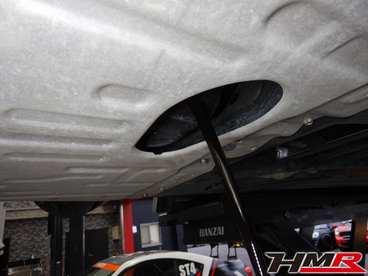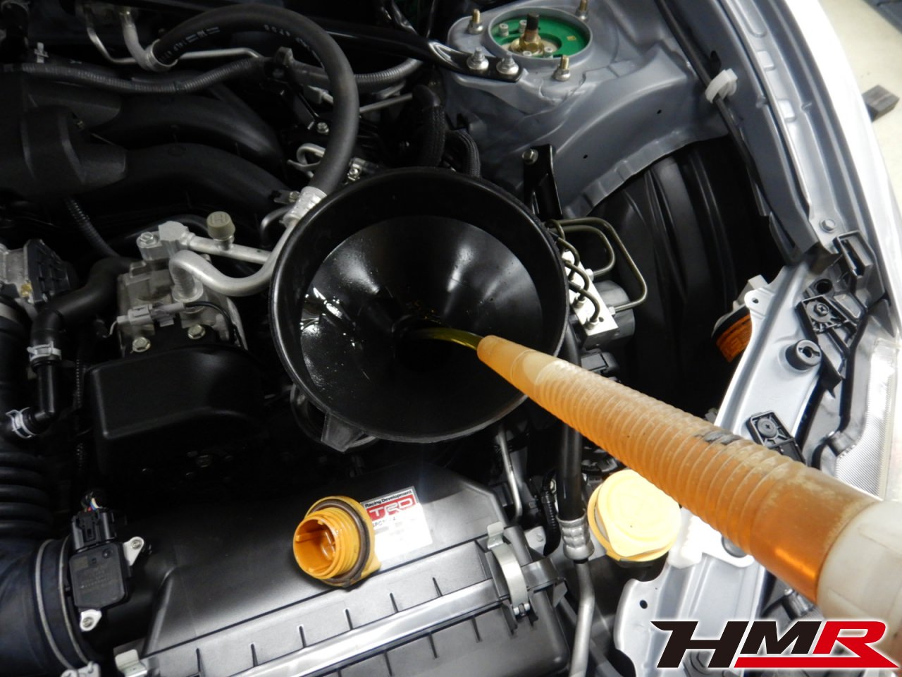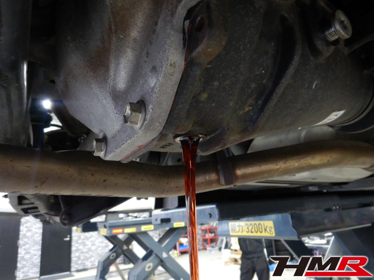 HMRでは納車前点検でエンジンオイルやブレーキフルード、ミッション(MTのみ)、デフオイルを新品交換しています。油脂類がリフレッシュされていれば納車して直ぐに楽しいドライブに行くことも出来ますね。まずはエンジンオイルから交換していきます。エンジンオイルはエンジン内部の潤滑・清掃および冷却をおこないます。定期的な交換を行わず走り続けると燃費悪化やパワーダウンからのエンジン不調などの重大な故障に繋がります。使用状況によりますが半年または5,000kmでの交換をおススメいたします。