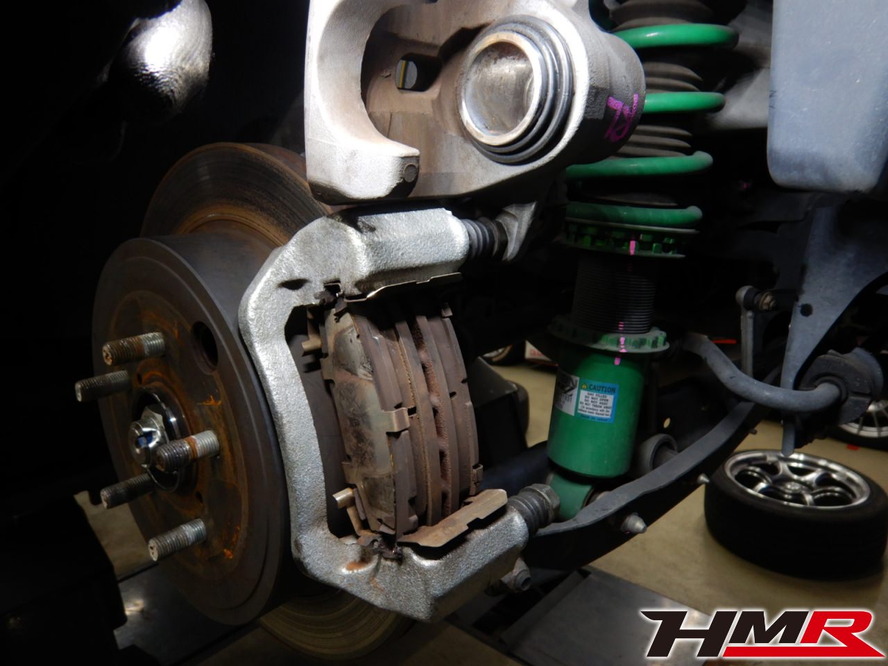 ブレーキパッドの残量をチェックしていきます。フロント・リアともに8mmでした。