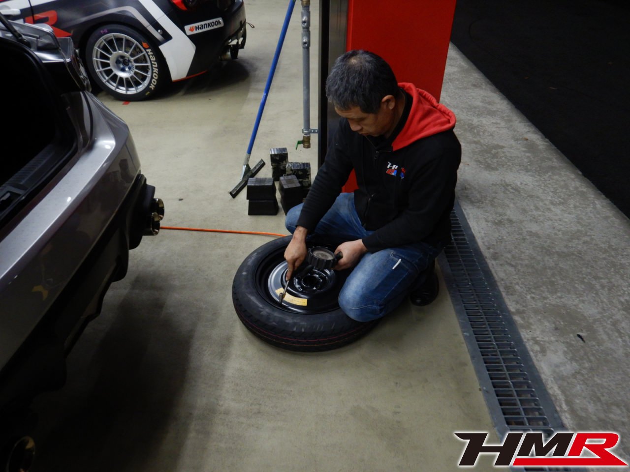 各タイヤの空気圧チェックをしています。タイヤのエアはゆっくり少しずつ抜けていきます。ガソリンスタンドで簡単に入れられますので1ヶ月に1度のチェックをおススメいたします。